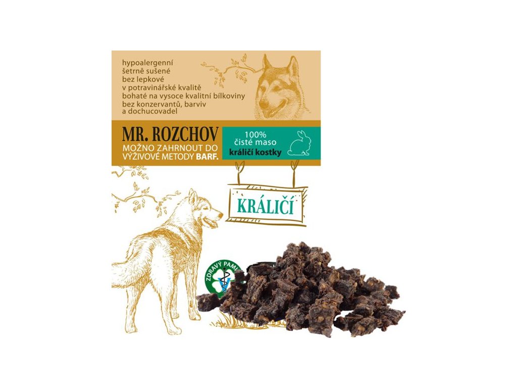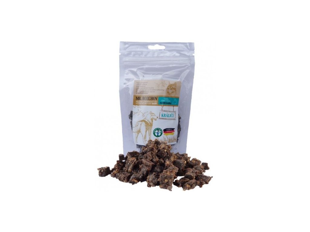 100% ČISTÉ SUŠENÉ MASO KRÁLIČÍ KOSTKY - přírodní pamlsek 80g