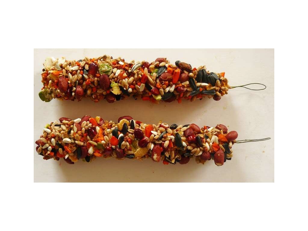 Tyčinky s ořechy jsou výbornou pochoutkou, ale také krmivem, které Vašemu mazlíčkovi dodává důležité vitamíny a minerály pro zdravý a vitální život. Tyčinky jsou speciální krmivo, kde musí Váš mazlíček vyvinou úsilí k získání své potravy podobně jako v přirozeném prostředí. To napomáhá jeho fyzické a psychické kondici.