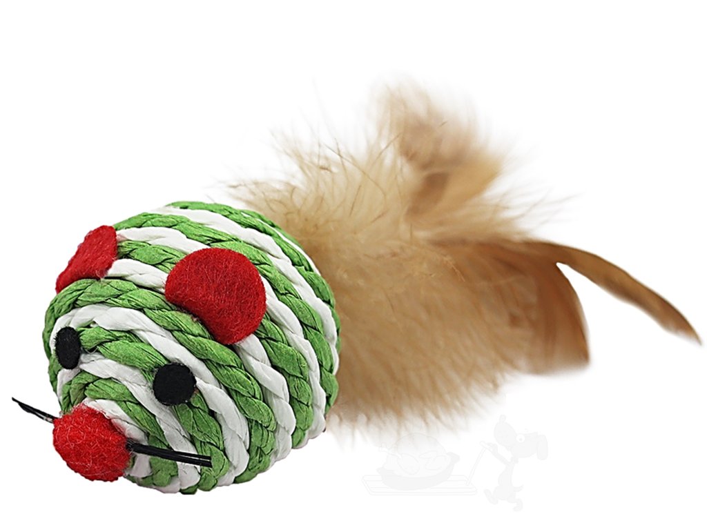 Hračka kočičí kulatá myš z přírodního lana s peřím je ideální hračka pro kočky, které milují hru na honbu. Poskytne jim hodiny zábavy a pomůže jim udržet se v kondici.