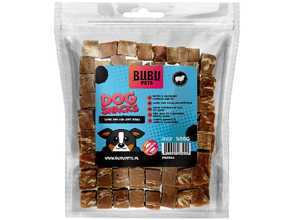Bubu Pets Mozaikové jehněčí kostky s treskou 500g (měkké)