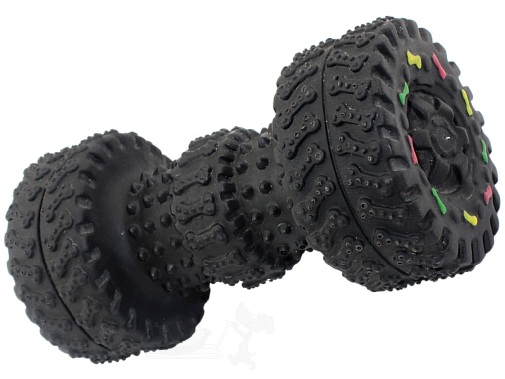 Pískací činka s pneumatikami 15cm má dostatečnou pružnost a texturovaný povrch s vroubky, které pomáhají čistit zuby.
