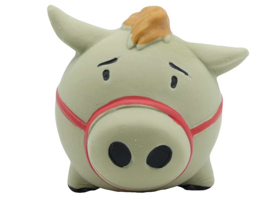 Míček s podobou oslíka je vyroben z latexu, který není pro psa nikterak závadný. Hračka je doplněná zvukovým čidlem (při stisku píská) a vyplněna polyesterem.