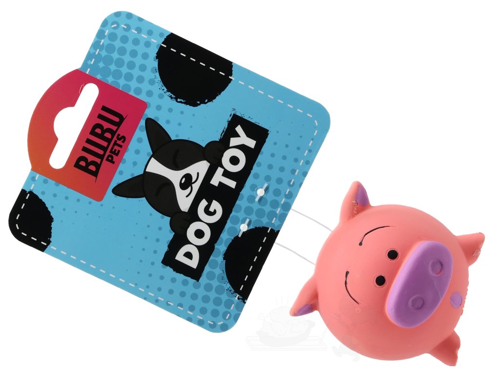 Míček s podobou prasátka je vyroben z latexu, který není pro psa nikterak závadný. Hračka je doplněná zvukovým čidlem (při stisku píská) a vyplněna polyesterem.
