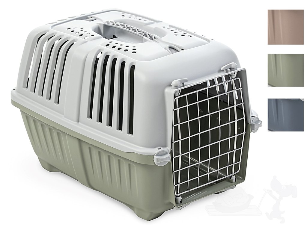 Odlehčená plastová přepravka Pratiko 2 pro kočky a psy s kovovými dvířky. Bezpečné a pohodlné cestování pro vašeho mazlíčka! Vyniká zajímavým designem, s praktickými úchyty na pás k nošení přes rameno. Rukojeť je přímou součástí vrchního dílu.