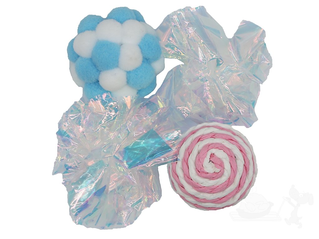 - Šustivý míček: Vydává šustivý zvuk, který kočky lákají ke hře.
