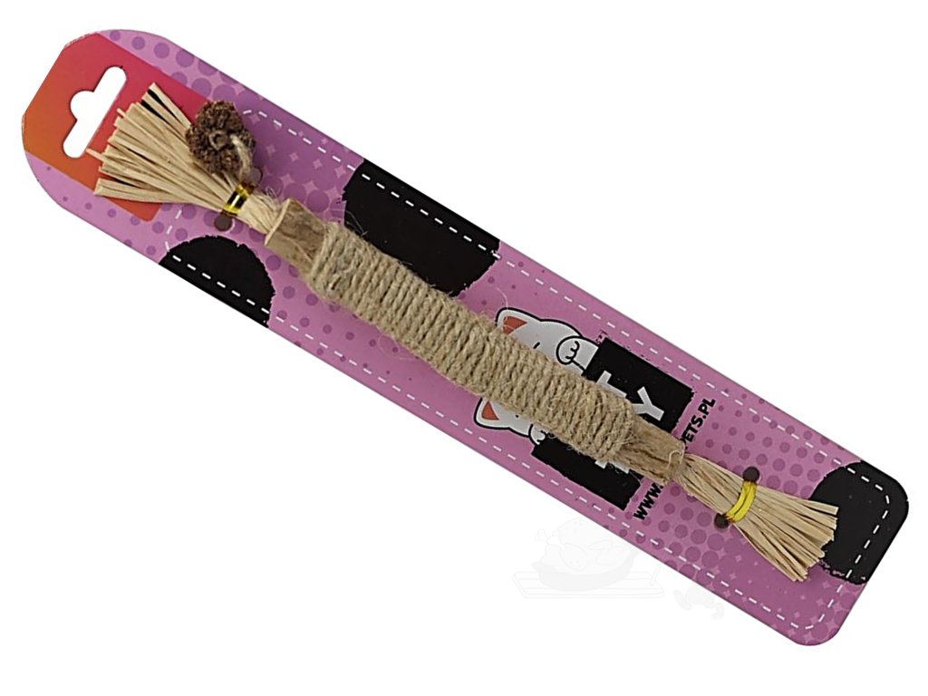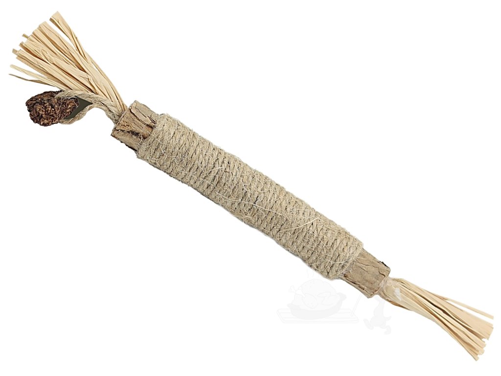 Tyčinka pro kočky s Matatabi plodem a střapci z lýka rafie omotaná jutovým provázkem: