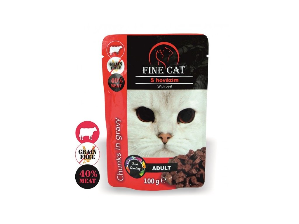 Fine Cat kapsička Grain-Free Adult hovězí v omáčce 100g