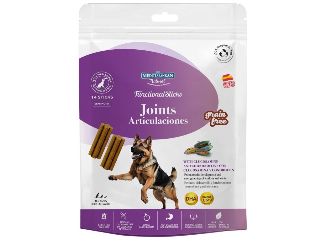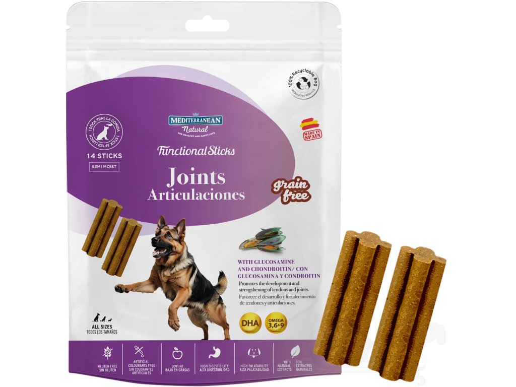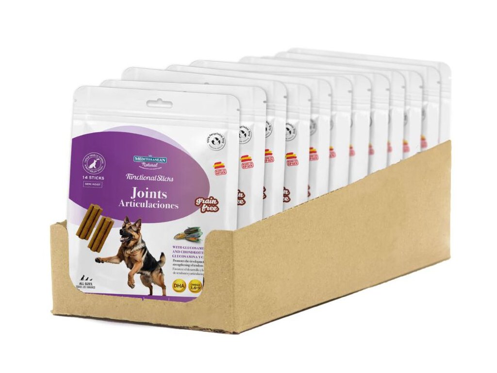 Funkční pamlsek pro psy ve tvaru tyčinky pro zdravé klouby s krůtím masem. Lahodná pochoutka Funcional sticks joints vyrobená z masa vařeného při nízké teplotě. S glukosaminem a chondroitinem, které podporují rozvoj a posílení šlach a kloubů.