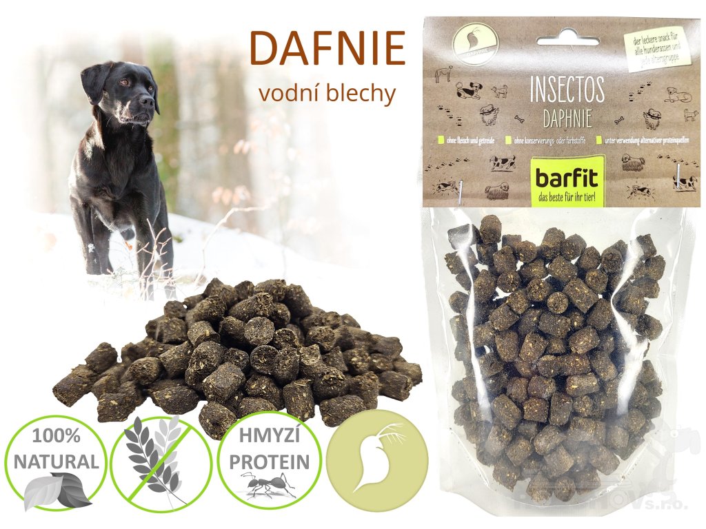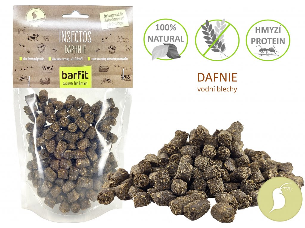 Hmyzí křupavá odměna pro psy s dafniemi. Skvělý pamlsek do kapsy na venčení i pro psy s citlivějším zažíváním. Základem těchto křupavých odměn je hmyzí protein - konkrétně z dafnií. Vhodné pro alergické psy na běžně používané druhy proteinů nebo lepek.