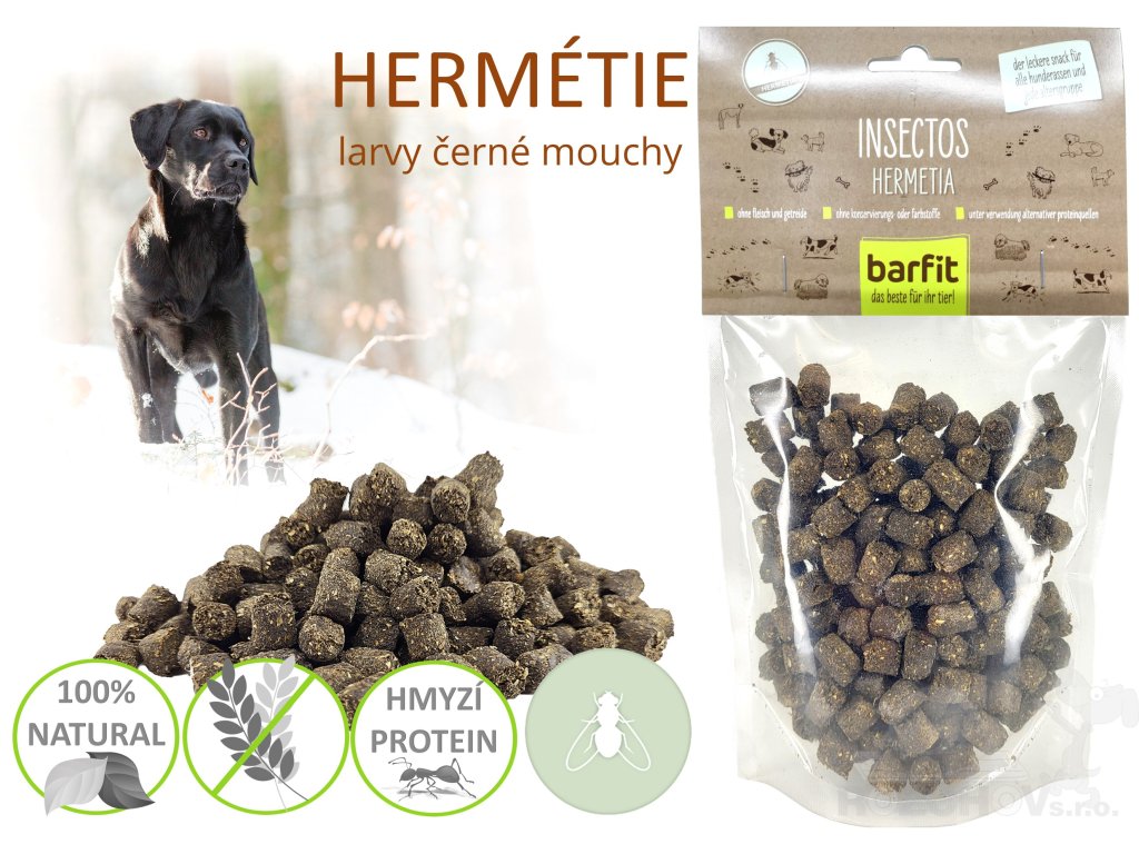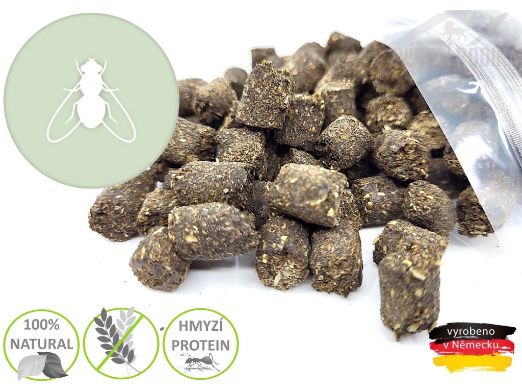 Hmyzí křupavá odměna pro psy s hermetiemi. Skvělý pamlsek do kapsy na venčení i pro psy s citlivějším zažíváním. Základem těchto křupavých odměn je hmyzí protein - konkrétně z hermetie. Vhodné pro alergické psy na běžně používané druhy proteinů nebo lepek.
