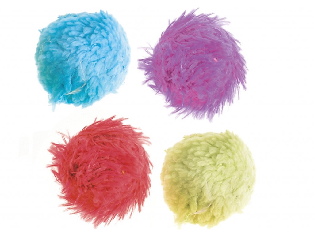 Hračka pro kočky - 4 chlupaté barevné míčky v jednom balení. Malé a chlupaté míčky, které si kočičky oblíbí.