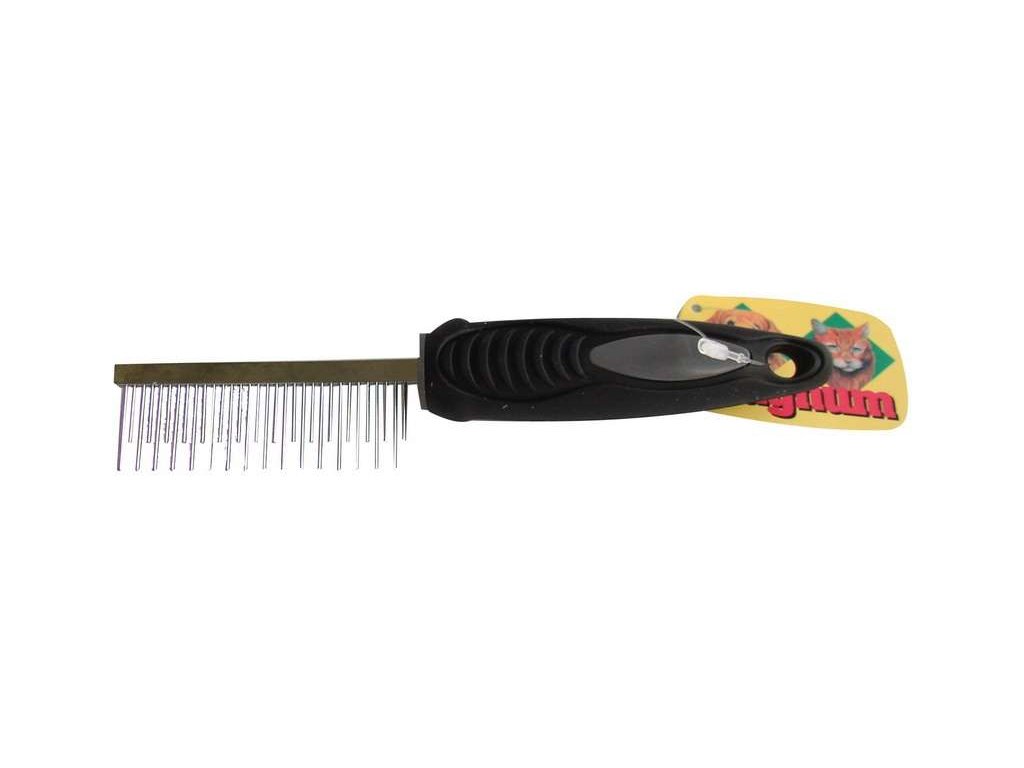 Hřeben se střídavými řidšími hroty pro precizní pročesání krátké, dlouhé i hrubé srsti s podsadou.Velmi komfortní měkčená a neklouzavá rukojeť.