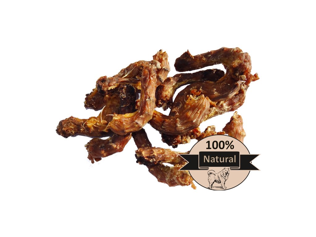 Sušené kuřecí krky, bez kůže, velmi křupavé. Kuřecí krky sušené jsou nízkotučnou pochoutkou určenou pro psy kteří mají sklony k nadváze. Pamlsek vyrobený přírodní cestou prostého sušení bez použití konzervantů a solí.