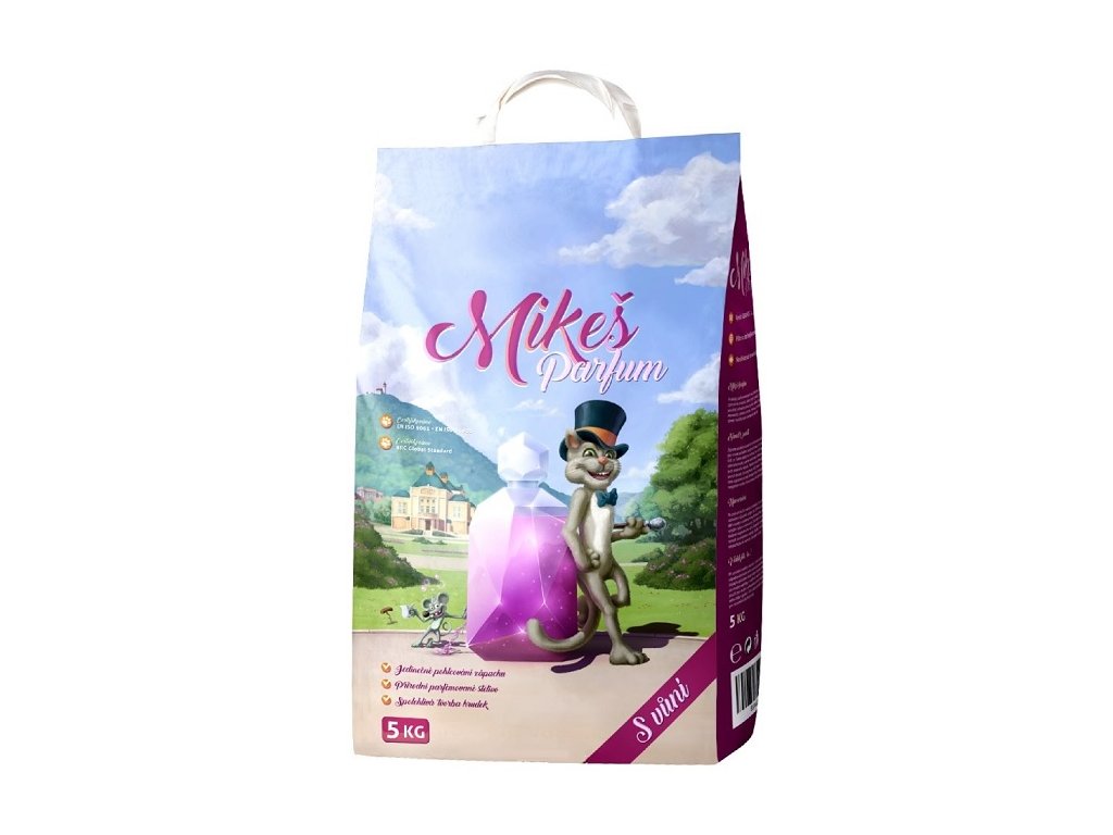 100% přírodní bentonitová, ekologicky nezávadná, hrudkující a velmi úsporná podestýlka s vůní. Mikeš Parfum 5kg - hrudkující stelivo s vůní je speciálně vyvinutý hygienický výrobek přizpůsobený náročné péči chovatele o svého chlupáče.