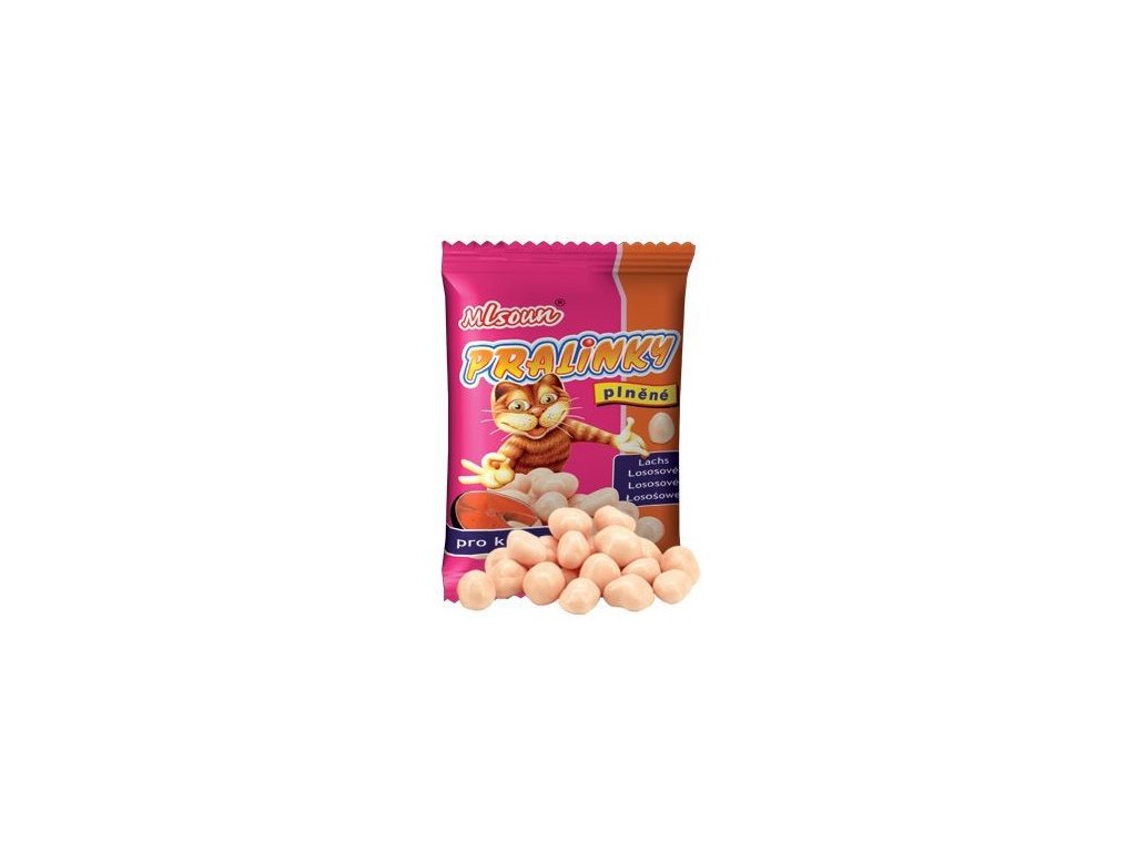 Doplňkové krmivo pro kočky. Plněné lososové pralinky - výtečný pamlsek pro kočky.Baleno 18 sáčků v kartonu.Cena uvedena za 1 sáček 40g.