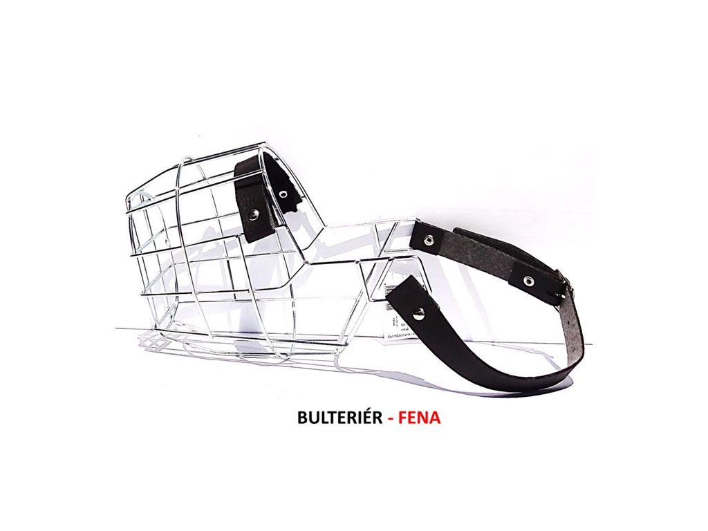 Kovový náhubek pro Bulteriéry s upínacími řemínky. Velmi kvalitní chromovaný kov vydrží dlouhou dobu.