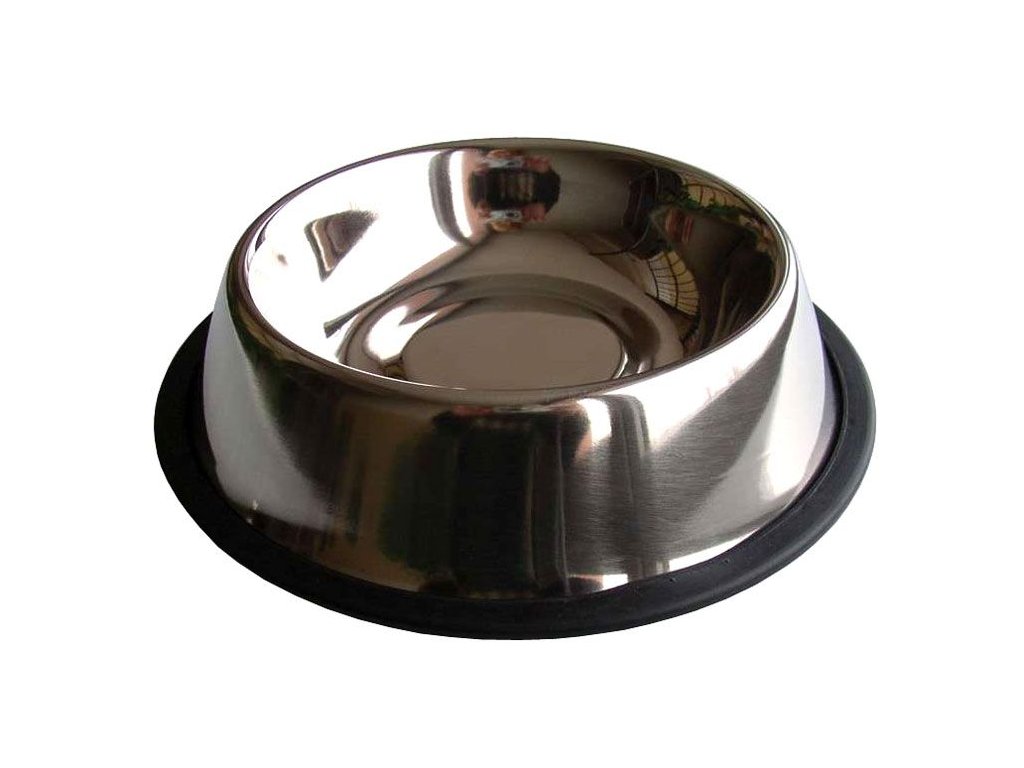 Nerezová miska se stabilizační protiskluzovou gumou - na vodu nebo krmivo vhodná pro psy menšího vzrůstu.