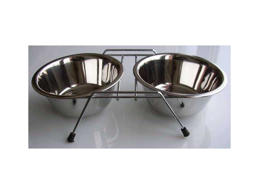 Nerezové misky na vodu a krmivo ve stojánku, který zabezpečí jejich stabilitu. Stojánek není výškově stavitelný.Cena za komplet 2x nerez miska 0,25 litru + stojánek.