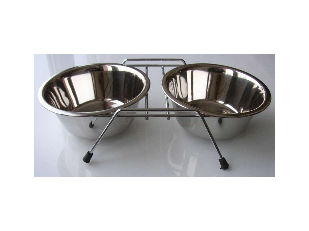 Nerezové misky na vodu a krmivo ve stojánku, který zabezpečí jejich stabilitu.Stojánek není výškově stavitelný. Cena za komplet 2x nerez miska 1,8 litru + stojánek.