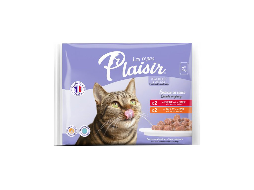 Plaisir cat Kapsa Multipack pro dospělé i kastrované kočky 4x85g (2xhovězí, 2xkuřecí)