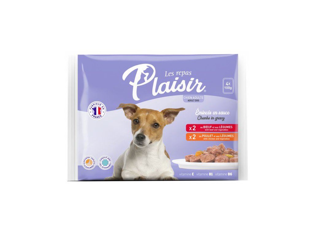 Plaisir dog Kapsa Multipack pro dospělé psy 4x100g (2xhověží, 2xkuřecí)