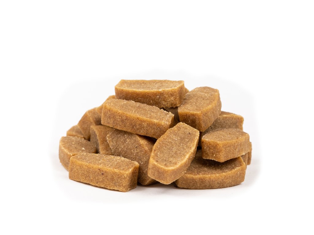 Poloměkký pamlsek bez obsahu obilovin je vhodný pro psy všech plemen (doplněk stravy). Pamlsek za odměnu.