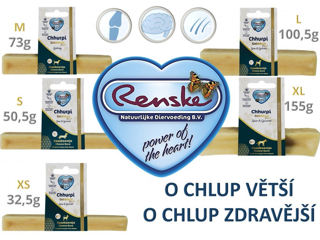Renske Churpi tyčinka která podporuje vývoj a posílení šlach a kloubů. 100% přírodní, vegetariánská, bezlepková a bez obilovin. S přídavkem KŘEMELÍNY, ŠALVĚJE, LNĚNÉHO SEMÍNKA, ČERTOVA DRÁPU A INDICKÉHO KADIDLA. Jednou z největších výhod je, že tato tyčinka má vysokou tvrdost, což znamená, že pes musí vynaložit větší úsilí na kousání. Je velmi houževnatá a pří kousání se neštěpí.