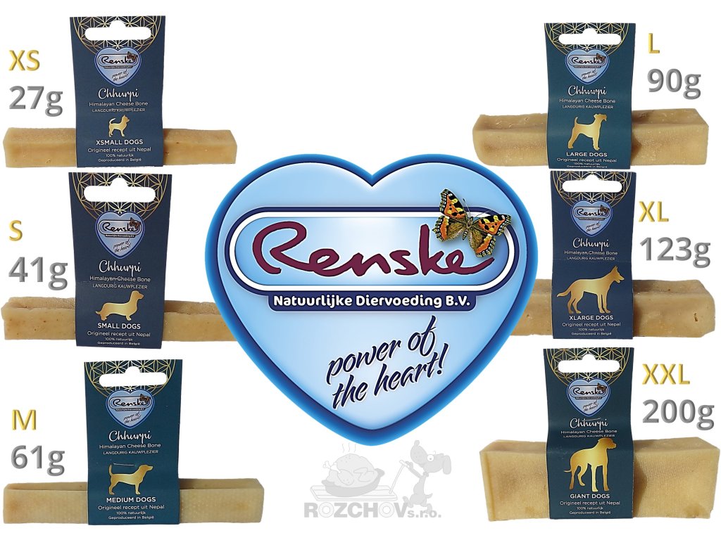 Renske Churpi tyčinka je 100% přírodní, vegetariánská, bezlepková a bez obilovin. Jednou z největších výhod je, že tato tyčinka má vysokou tvrdost, což znamená, že pes musí vynaložit větší úsilí na kousání. Je velmi houževnatá a pří kousání se neštěpí.