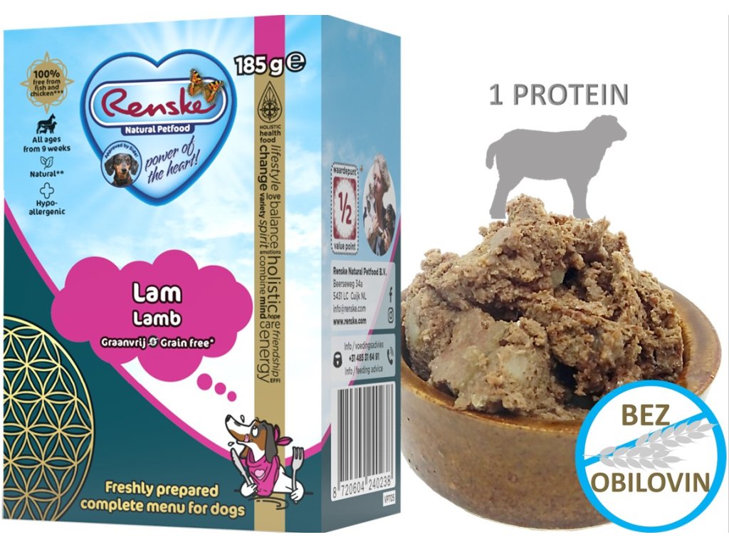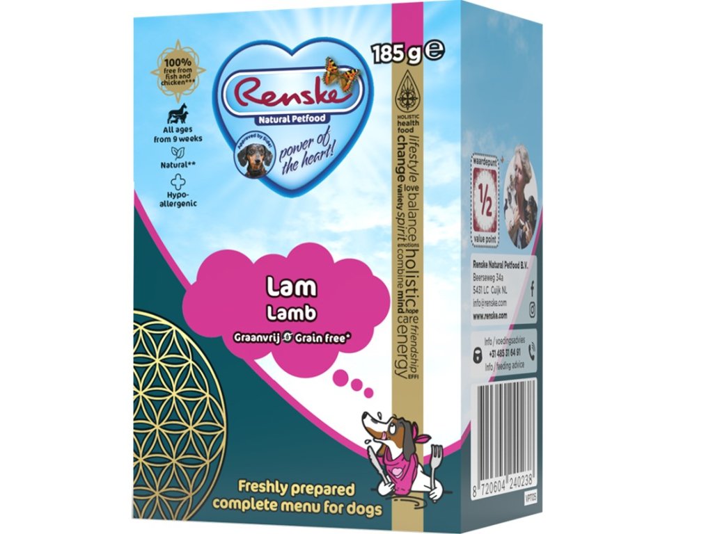 Renske Tetra pak obsahuje 70% čerstvého jehněčího masa doplněného lahodnou zeleninou. Díky kvalitním surovinám jsou jídla lehce stravitelná a oblíbená i mezi náročnými jedlíky! Jídlo je baleno do pohodlných balíčků s malými porcemi, které se skvěle hodí i na cesty nebo dovolené. Výrobek s čerstvým jehněčím masem je kompletní, bezlepkové a bezobilné krmivo pro mladé, dospělé i staré psy všech plemen od 9 týdnů věku.