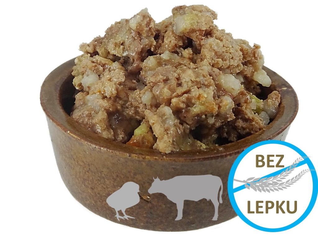 Výrobek obsahuje 60% čerstvého kuřecího a hovězího masa doplněného o rýži a lahodnou zeleninu. Díky kvalitním surovinám jsou jídla lehce stravitelná a oblíbená i mezi náročnými jedlíky! Jídlo je baleno do pohodlných balíčků s malými porcemi, které se skvěle hodí i na cesty nebo dovolené.