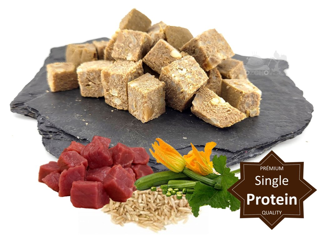 Wallitzer salám pro psy - hovězí s cuketou. Máte doma začínajícího stopaře? Hledáte pro něj lákavou, ale zdravou odměnu? Tento salám je naprosto ideální. Jak pro lovecké psy, tak pro výcvik Nouseworku a jiných aktivit.