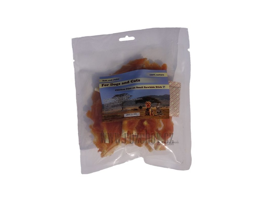 Měkká, přírodní masová pochoutka z kuřecího masa na rolované tyčce z bůvolí kůže.