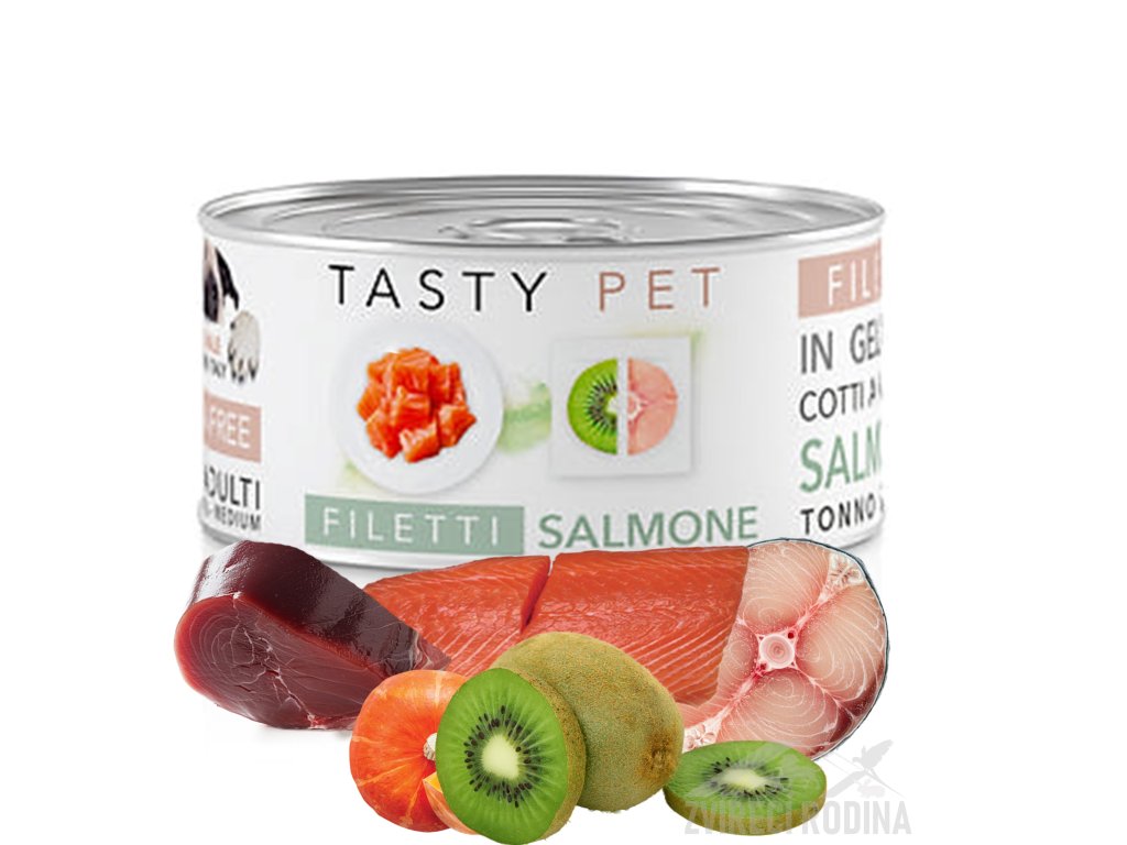 TASTY PET adult/puppy s lososem, tuňákem, treskou, dýně a kiwi 150g
