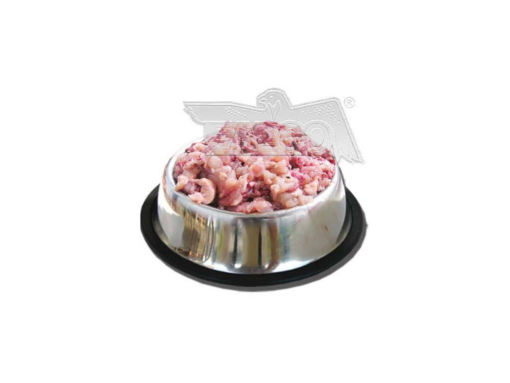 POUZE VELKOOBCHODNÍM ROZVOZEM - NEZASÍLÁME.100% jemně mletého kuřecího masa z trupů a drobů. Česká, ručně plněná konzerva přirozeně konzervovaná, zcela bez chemických přísad a náhražek. Receptura sestavena přímo veterinářem.