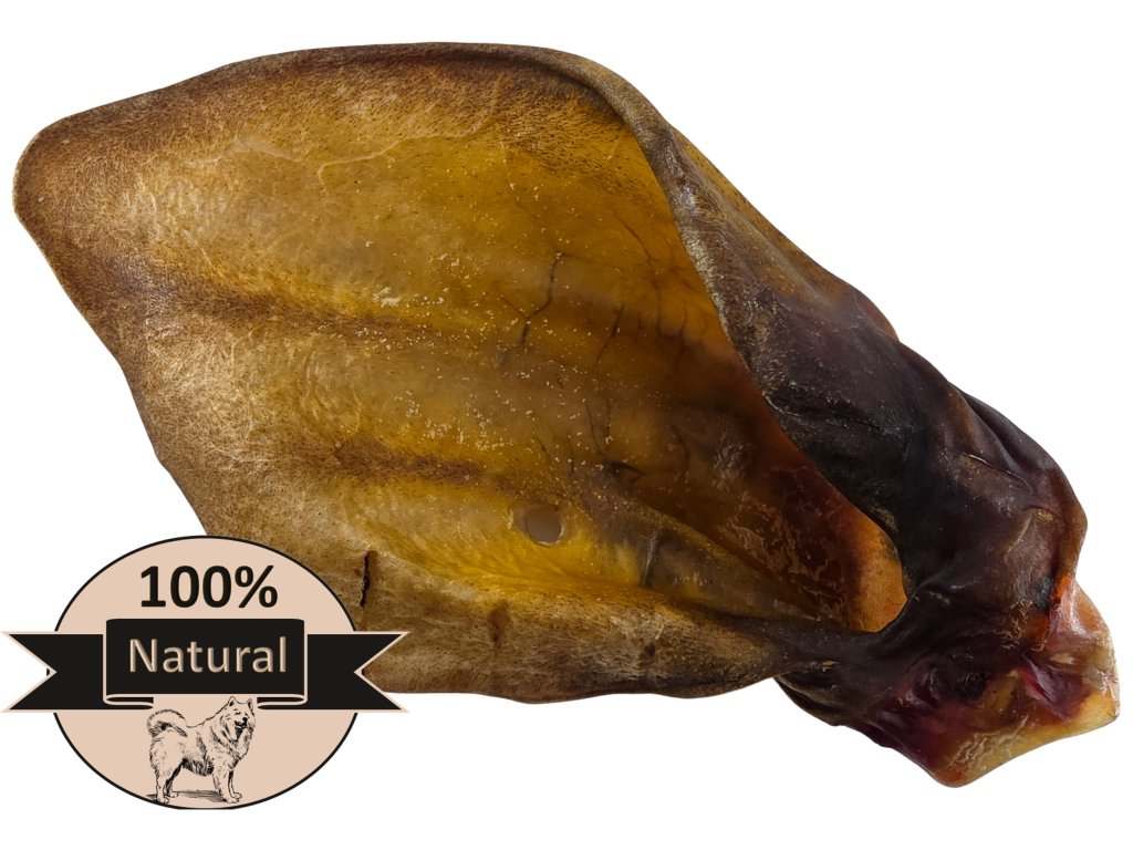 Přírodní pamlsek - čistá chrupavka, která je bohatá na kolagen a proteiny s nízkým obsahem tuku. Vhodné i pro štěňata. Stejně tak jako doplněk, případně jako náhrada za užívané léky při potížích s klouby. Ucho obsahuje látky, které jsou nezbytné pro správný vývoj psích chrupavek, vaziva a kloubů.