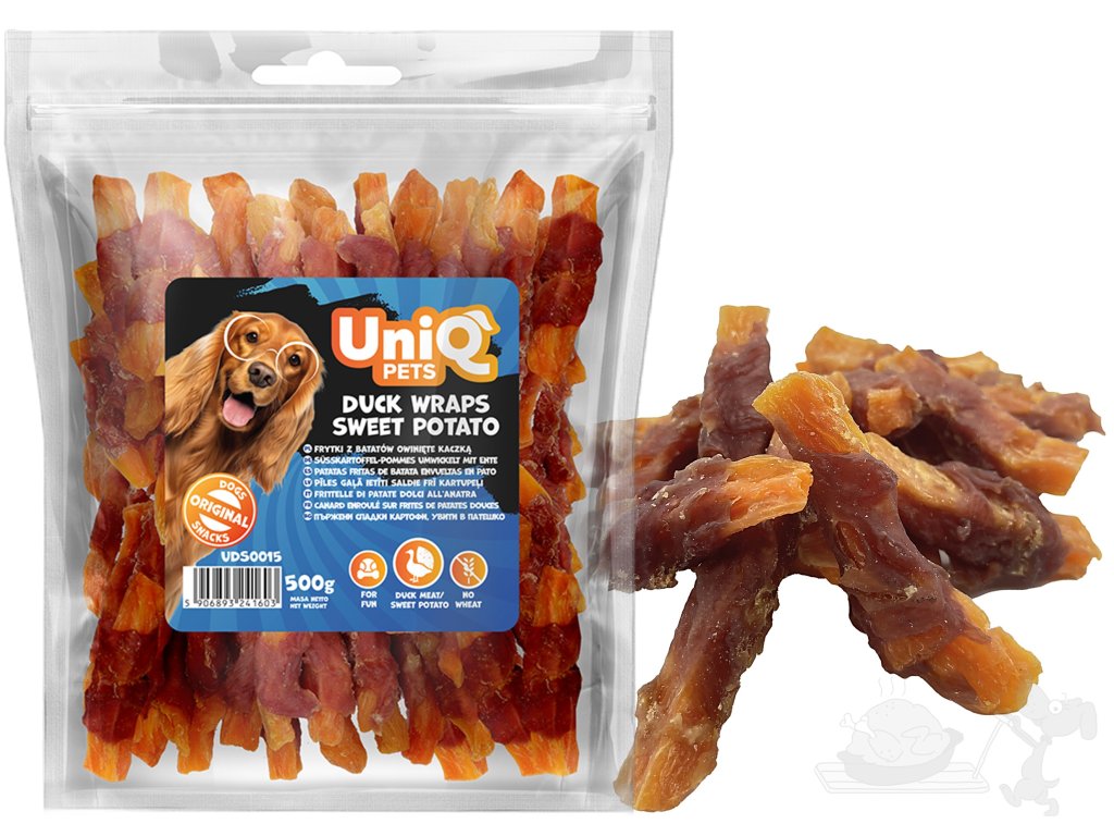 UNIQ Pets Batátové hranolky obalené kachním masem 500g (měkké)