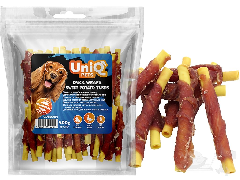 UNIQ Pets Batátové trubičky obalené kachním masem 500g (měkké)