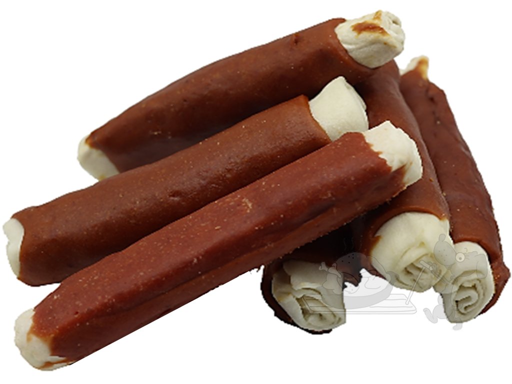 Pamlsek pro psy, vyrobený z kůže potažený sušeným jehněčím masem. Je tvrdší, nutí pejsky kousat tím prospívá zubům a dásním.
