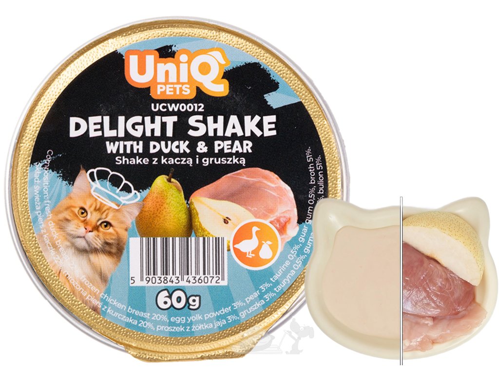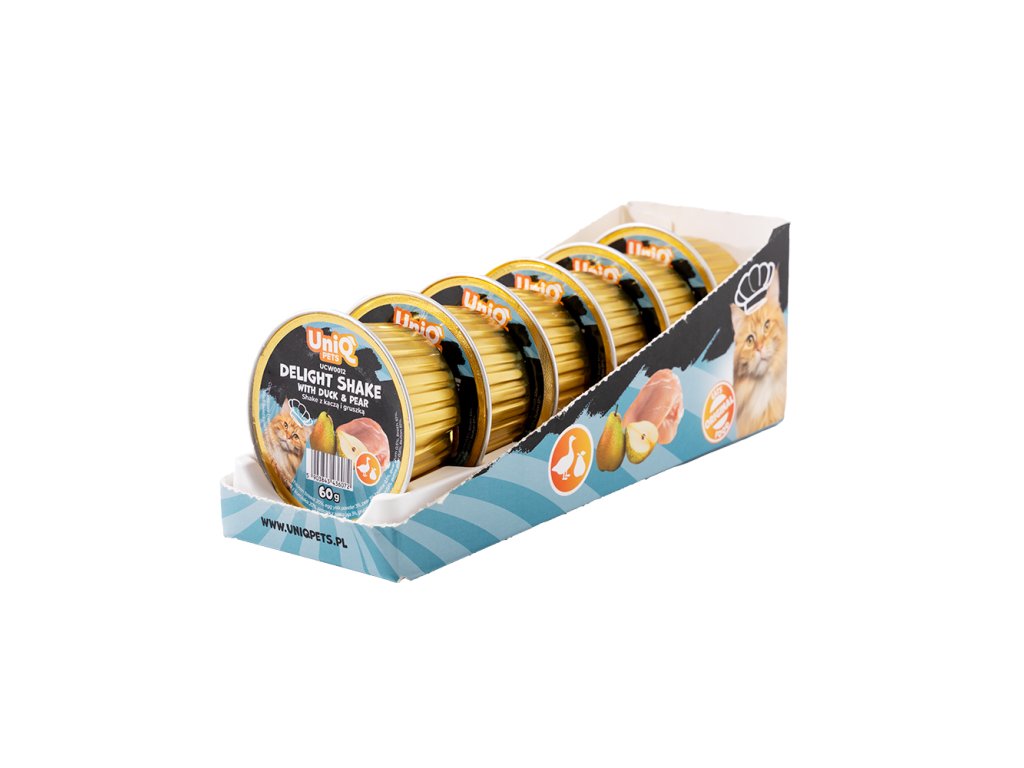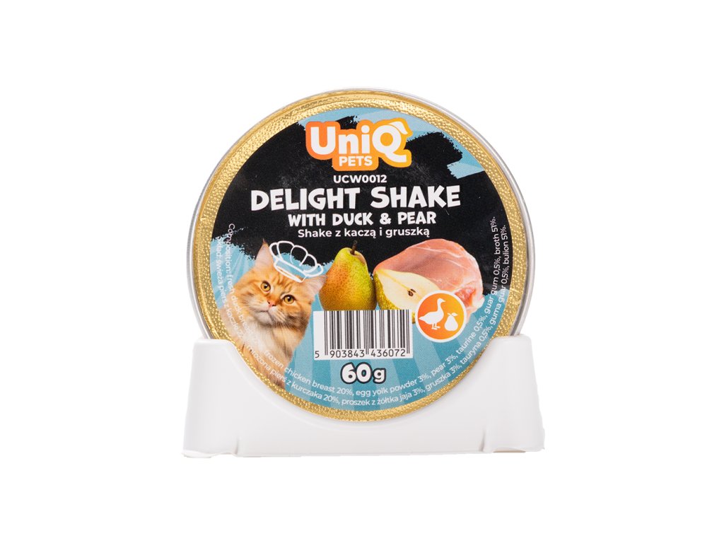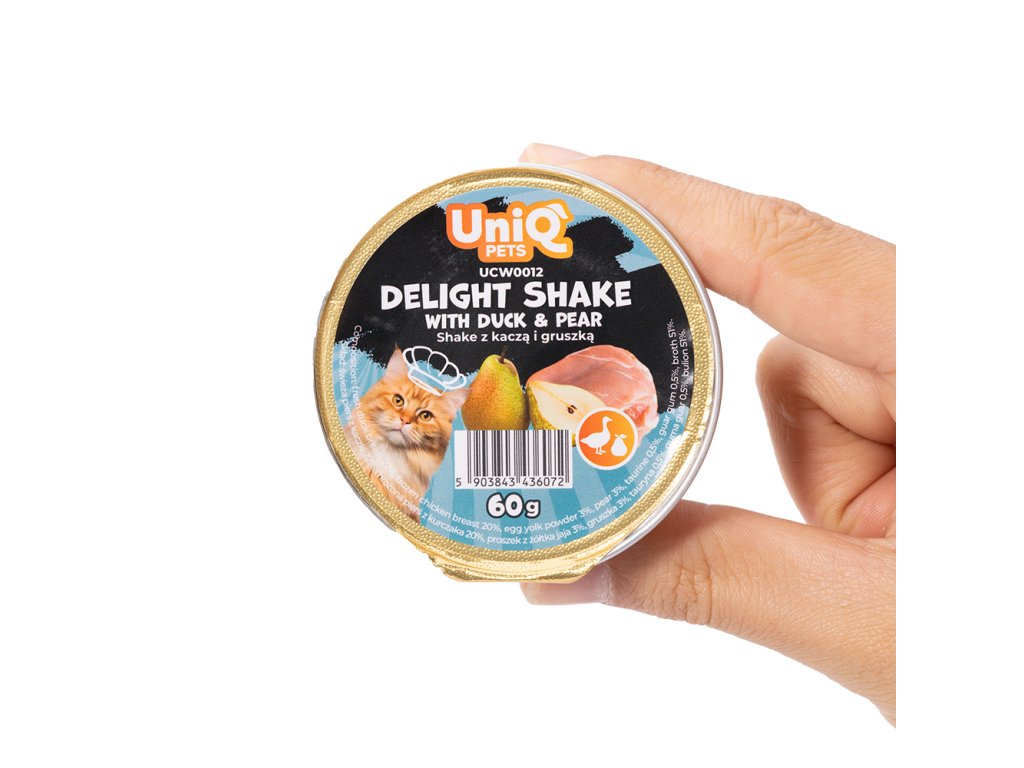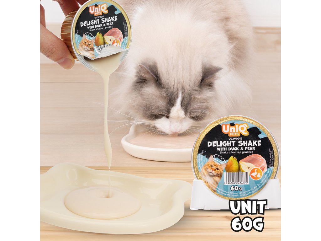 UNIQ PETS Delight Shake – krémový pamlsek pro kočky 60g s kachnou & hruškami