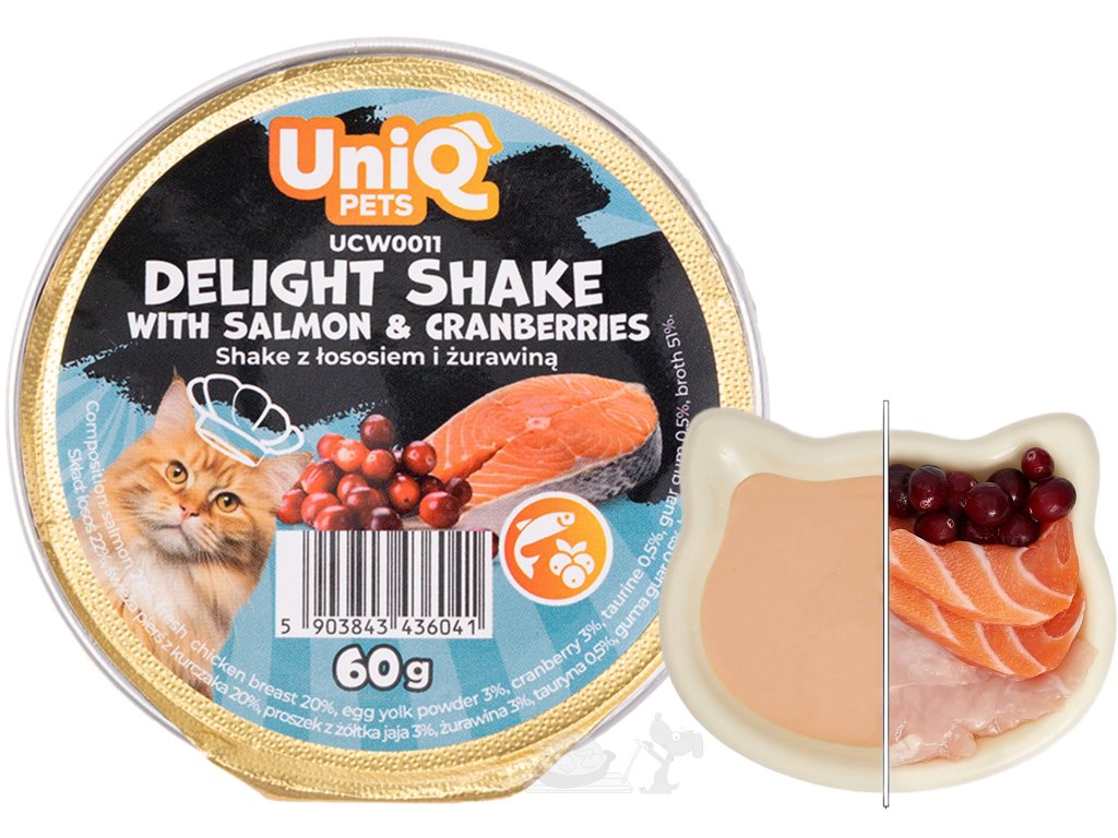 UNIQ PETS Delight Shake – krémový pamlsek pro kočky 60g s lososem a brusinkami