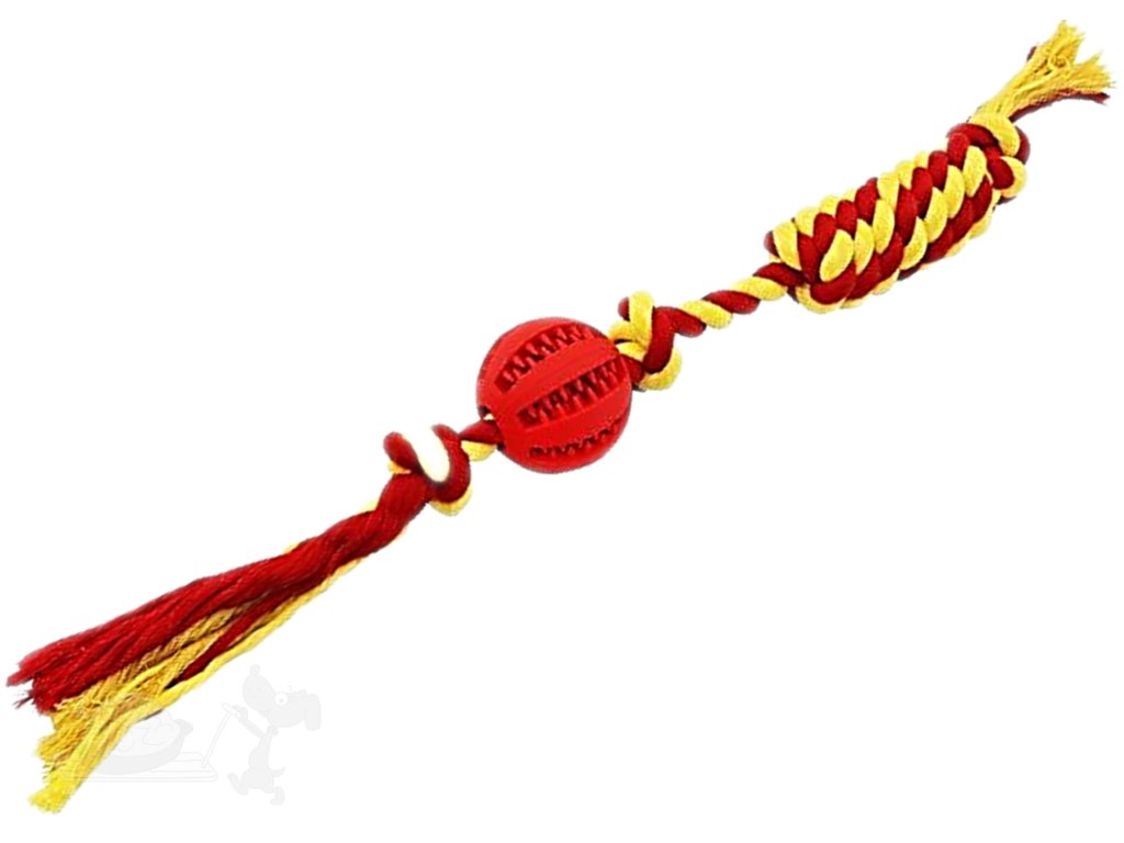 Odolný materiál: Lano je z bavlny a míček z odolné gumy, takže hračka vydrží i silné kousání.