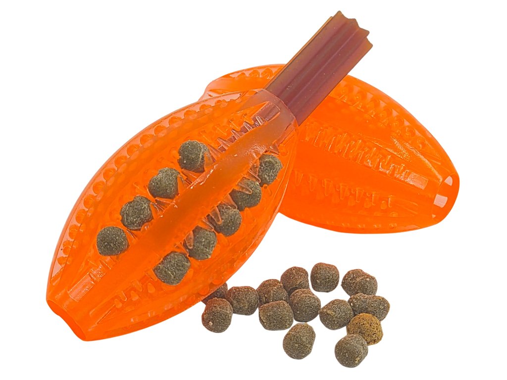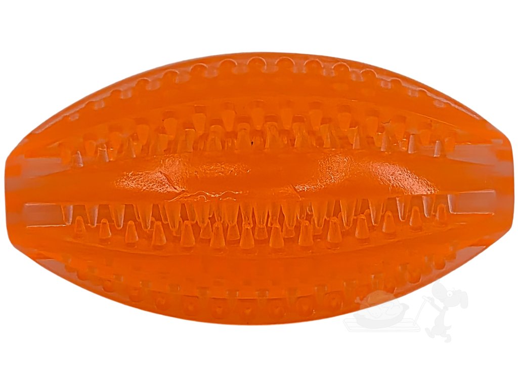 UNIQ PETS dentální ragbyový TPR míč na pamlsky s vůní máty 9cm oranžový