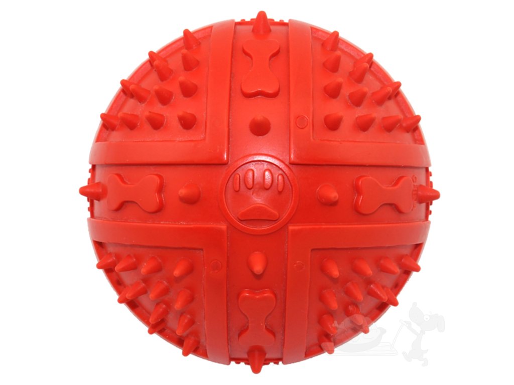 Míč je vyroben z kvalitní gumy a má pískátko, které upoutá pozornost psa a zabaví ho na dlouhou dobu. Navíc je zdoben měkkými hroty, které při kousání masírují dásně a pomáhají odstraňovat zubní plak. S tímto míčem si užijete spoustu zábavy a navíc se postaráte o zdraví svého pejska.