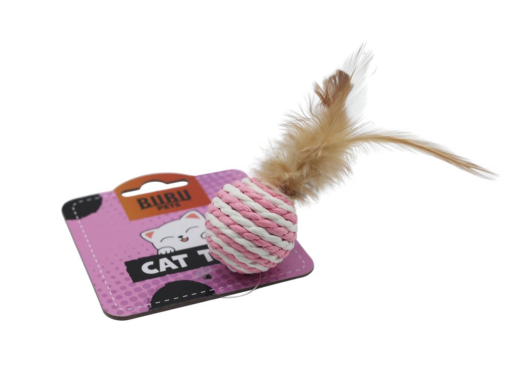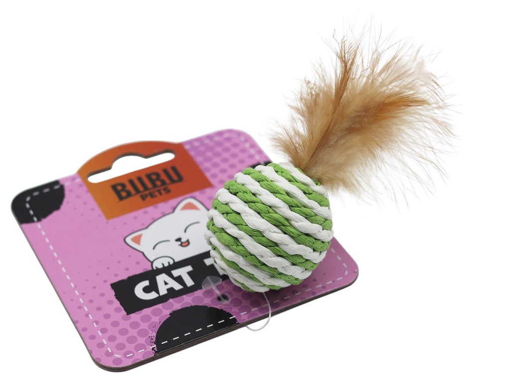 UNIQ pets hračka pro kočky- míček z přírodního lana s peřím 4cm