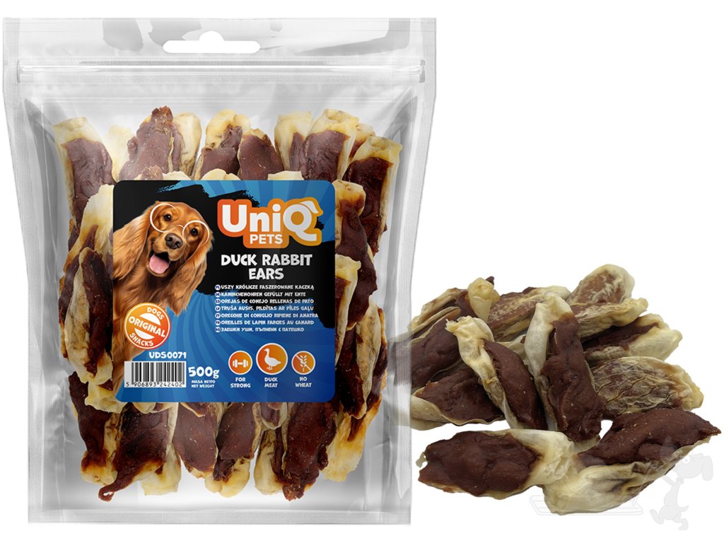 UNIQ pets Králičí uši plněné kachnou 500g (měkké)