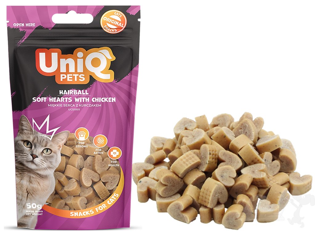 UNIQ pets kuřecí masové srdíčka proti bezoárům 50g (měkká)