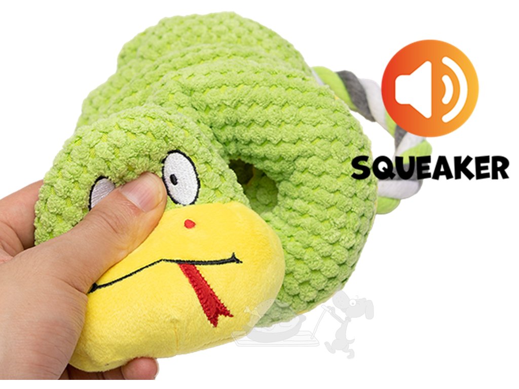 Pískací hračka pro psy: Integrované pískadlo v těle hada generuje zvuk, který stimuluje zájem zvířete a podněcuje k aktivní interakci.