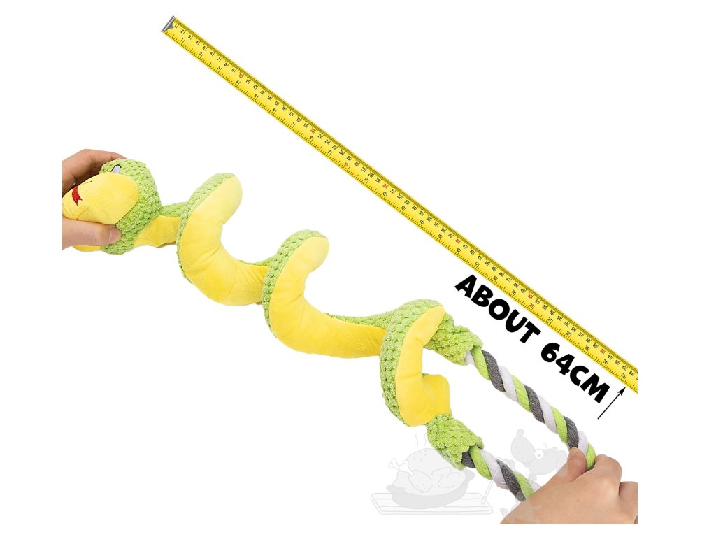 Dlouhá hračka pro psa: Hračka je navržena pro dynamické přetahování. Její délka se z klidových 36 cm natahuje až na 64 cm, což z ní činí efektivní hračku na přetahování.