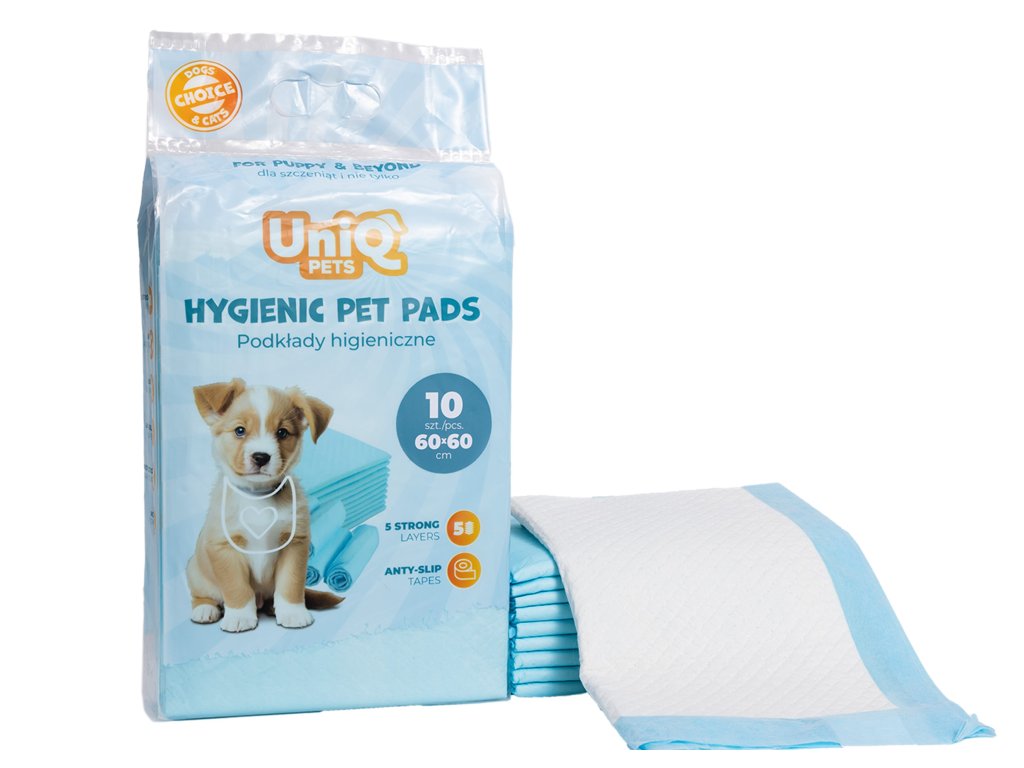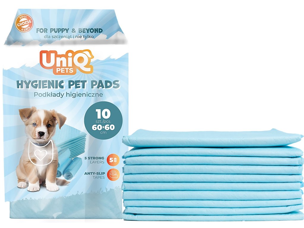 UNIQ PETS plenkové podložky 60x60 cm s lepícími rohy jsou praktickým pomocníkem pro každodenní hygienu domácích mazlíčků. Díky 5vrstvé konstrukci nabízí spolehlivou savost, pomáhají uzamykat vlhkost a chrání podlahu před protečením i znečištěním.