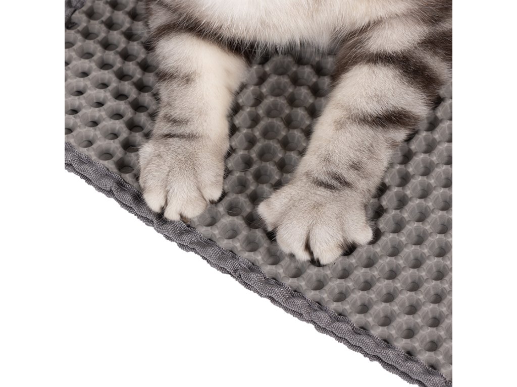 Podložka je vyrobena z měkké EVA pěny, která je šetrná ke kočičím tlapkám a příjemná pro každodenní používání. Protiskluzové provedení pomáhá držet podložku na místě. Velkou výhodou je také velmi snadná údržba – stelivo stačí vysypat, podložku vytřepat, vysát nebo opláchnout vodou.
